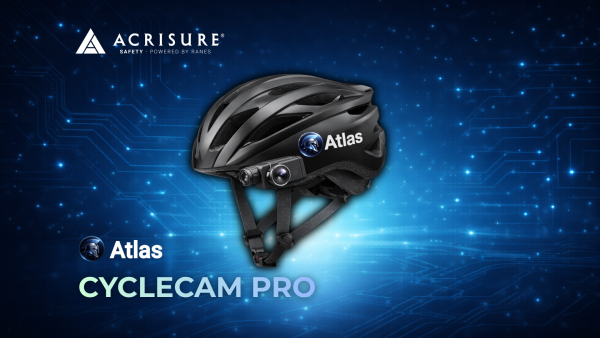 The Atlas CycleCam Pro records high-definition video from your bicycle helmet, providing clear ride documentation and seamless integration with Acrisure Safety for safety monitoring and incident protection.